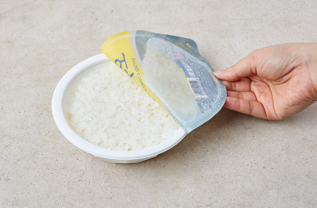 전자레인지로 오뚜기밥을 조리한다.