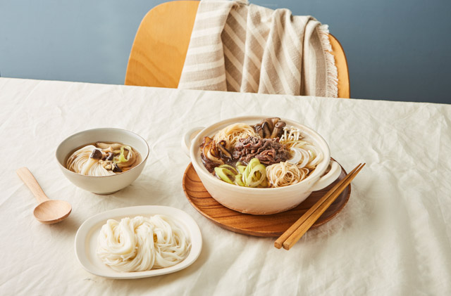 이제는 우리에게도 친숙한 쌀국수. 음식점에서 즐기던 쌀국수를 집에서도 간편하게 만들어 볼 수 있어요. 세 가지 버섯이 들어가서 더욱더 풍미가 있는 쌀국수 한 그릇 어떠세요? 완성된 쌀국수에 취향에 따라 숙주나 고수를 추가해서 먹어도 좋아요.