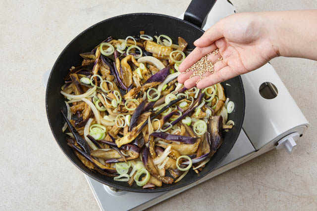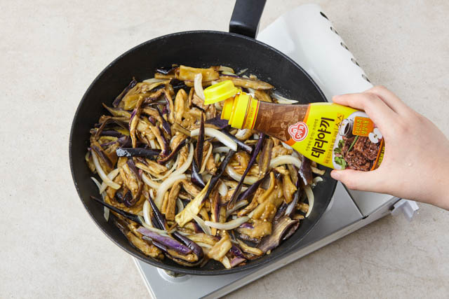 불린 가지와 데리야끼소스를 넣고 3분간 볶는다.