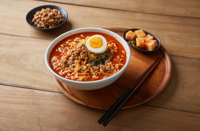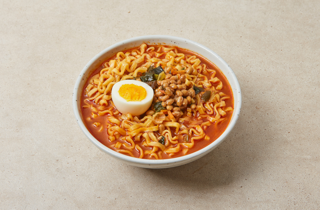 진짬뽕1봉, 반숙달걀1개, 오뚜기 제주콩으로 만든 생낫또1개