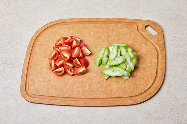 방울토마토는 4등분 하고 샐러리는 얇게 어슷 썰어준다.