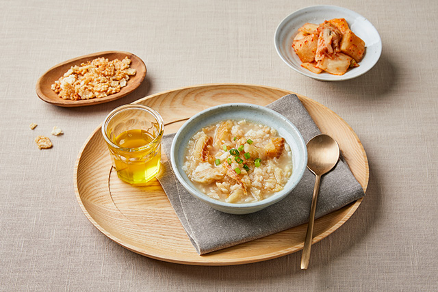 북어누룽지죽은 속을 편안하게 풀어주는 따뜻한 죽입니다. 북어와 누룽지를 사용해 깊고 진한 국물 맛을 내며, 속을 든든하게 채워주는 한 끼로 좋죠. 특히 추운 날씨에 몸을 따뜻하게 해주는 완벽한 메뉴예요. 고소하고 시원한 맛을 즐기실 수 있습니다. 간단하게 오뚜기 누룽지와 오뚜기 멸치장국을 활용하면 더욱 손쉽게 만들 수 있어요.