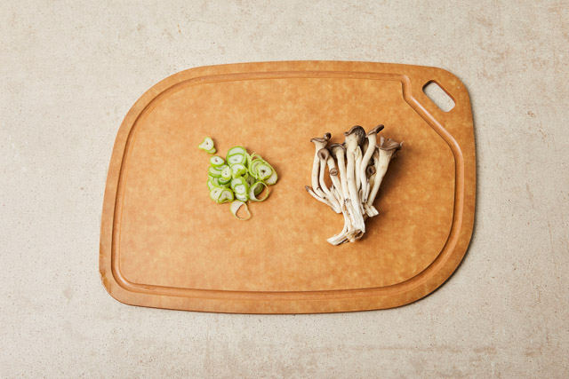 대파는 송송 썰고 느타리버섯은 적당한 크기로 찢어 준비한다.