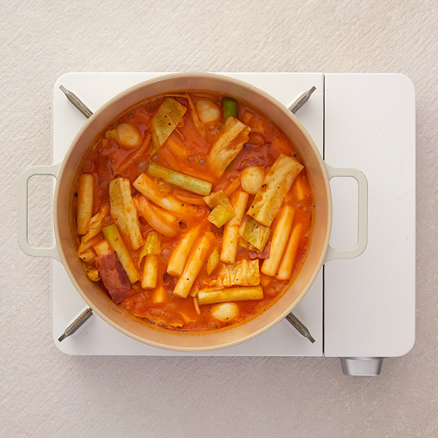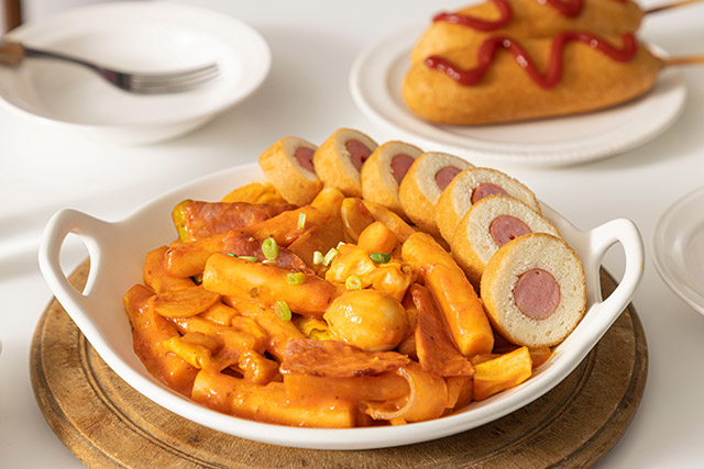 새로운 소울 푸드로 떠오른 로제떡볶이 레시피를 소개합니다. 국내산 참나무의 훈연향이 맛있게 밴 베이컨을 더한 프레스코 베이컨로제 소스로 간편하게 만들어보세요. 지중해산 토마토가 풍성하게 포함되어 있어서 여러 재료를 더하지 않아도 감칠맛도 좋습니다. 통후추는 기호에 따라 양을 조절해주세요. 토핑으로 핫도그를 곁들여도 좋습니다.