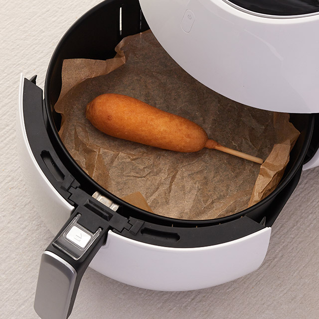 맛있는 오리지널핫도그는 전자레인지(700W)에 1분20초 조리한 후 에어프라이어 180도에 3분간 조리한다.