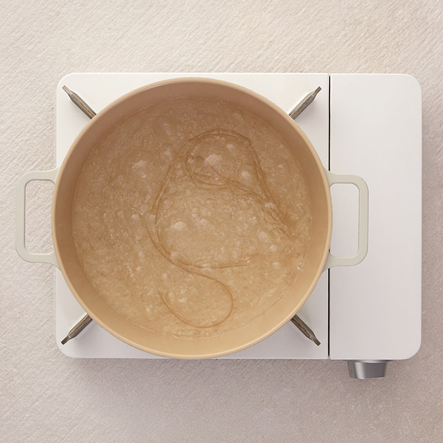 중국식넓은당면은 끓는 물에 10분간 익힌다.